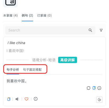 All example sentences can be collected to see customized translation content and "Advanced Explanation" function