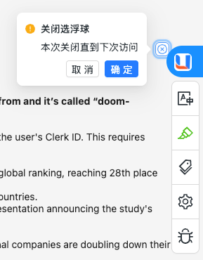 You can directly close the floating ball on the current page, and it will continue to appear after refreshing the page
